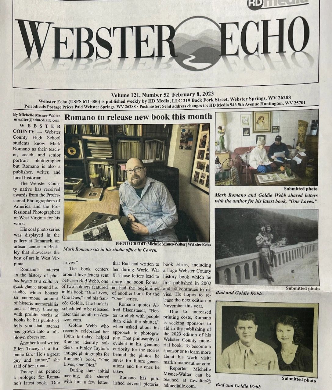 Mark Romano, and his books--including One Lives, One Dies, One Loves, and his latest, One Writes--are featured in an article in the April 7 edition of The Fayette Tribune.